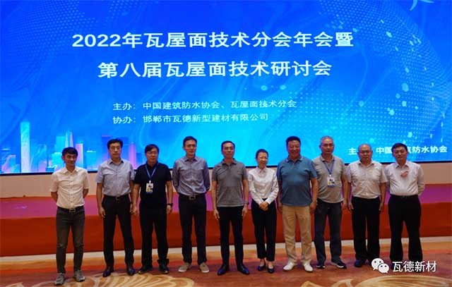 7月27日,由瓦德新材協(xié)辦,作為2022第三屆防水行業(yè)大會(huì)平行論壇的2022年第八屆瓦屋面技術(shù)與市場(chǎng)研討會(huì),在南京白金漢爵大酒店召開。瓦德新材董事長(zhǎng)謝富強(qiáng)帶隊(duì)參加。